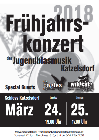Karten: Trafik Margit Schöberl in Katzelsdorf und per Mail an [email protected] (VVK: 12€, AK: 15€, Kinder 6-14 6€/7,50€)