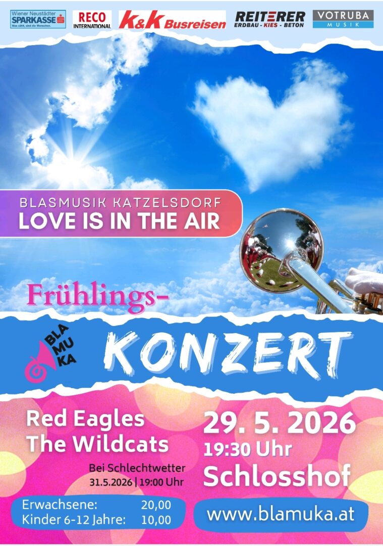 2026 steht bei der Blasmusik Katzelsdorf ganz im Zeichen der Liebe! Wir freuen uns, Sie beim diesjährigen Frühlingskonzert am 29.5. im Schlosshof Katzelsdorf begrüßen zu dürfen!